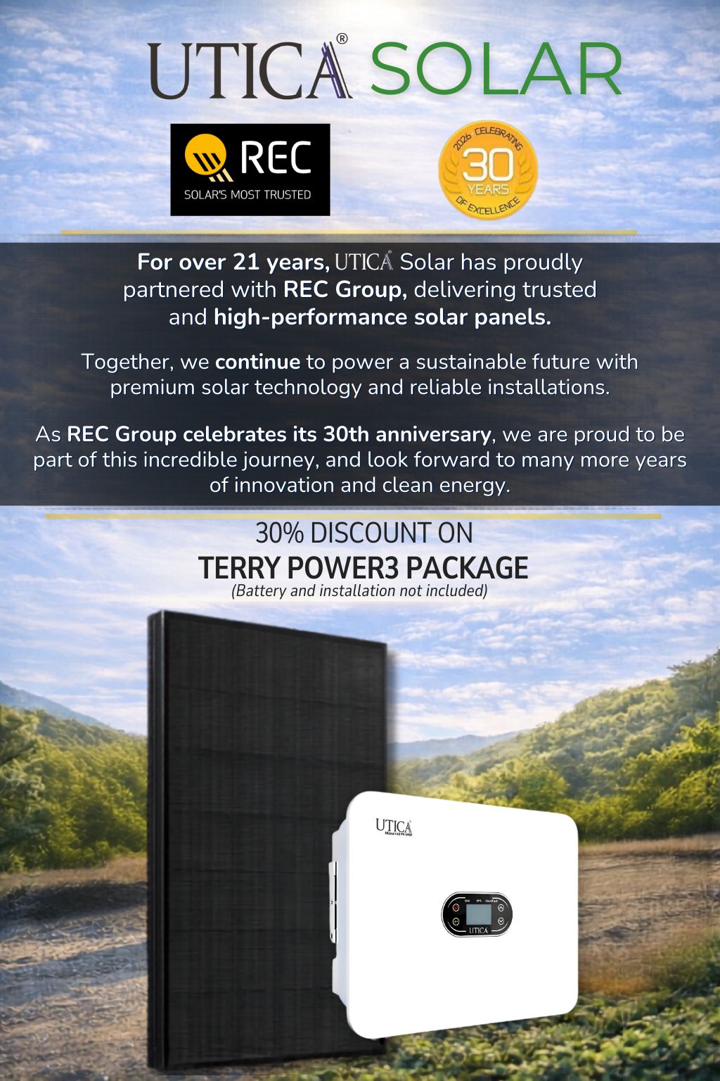 Every UTICA® Smart Solar Energy System is passionately engineered and assembled in Singapore. Our smart systems feature REC Alpha Pure-RX solar panels manufactured locally, and the UTICA® MicroGrid PV3000 inverter designed for tropical performance.